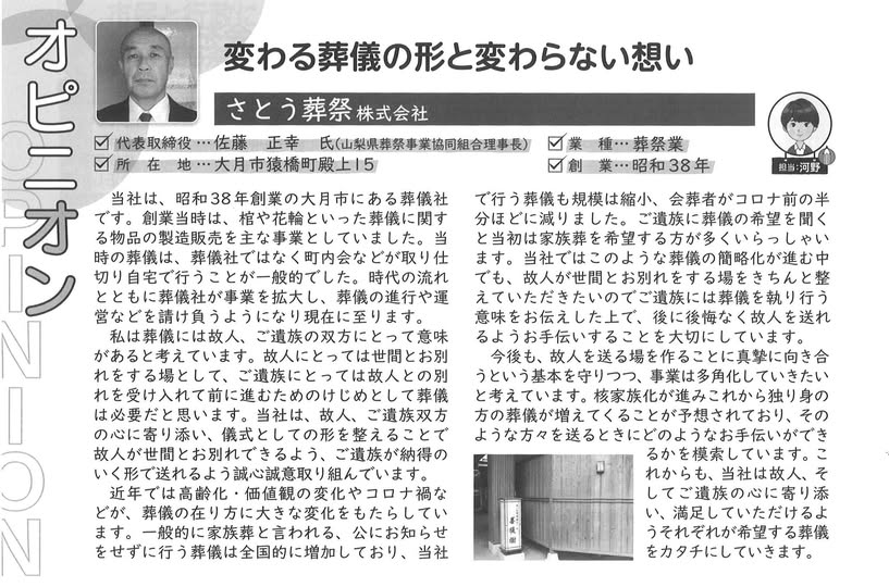 中小企業組合NABIの2024年10月号に、さとう葬祭社長の記事が掲載されました。